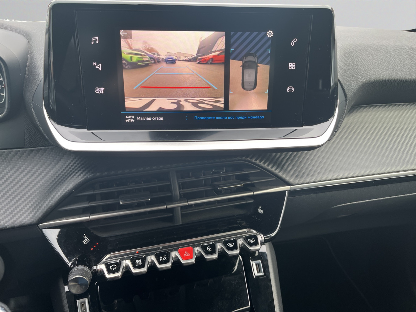 -Централна конзола с подлакътник с черни шевове Peugeot i-Cockpit® с аналогов инструментален панел 3,5" с цветна матрица -Декорация "карбон" на бордното табло